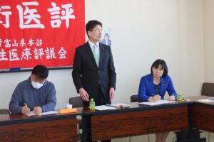 その後、自治労富山県本部衛生医療評議会幹事会に参加し、公立病院の課題をお聞きしています。