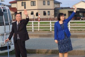 アルビス羽根店前にて、富山市議会議員の「東あつし」さんと合流しました。
