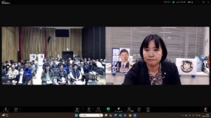 都北地区「学習会」にZoomで参加し、ご挨拶と意見交換を行いました。会場には、参議院宮崎選挙区の「山内かなこ」総支部長が参加されていました。
