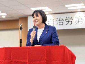 会期中のため中央委員会には間に合いませんでしたが、夕方から行われた総決起集会に鬼木まこと議員と参加しました。