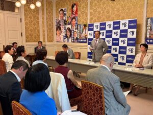 (会場に福山哲郎参議院議員、山本わかこ京都府総支部長が出席)