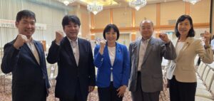 立憲民主党福島県連の金子恵美衆議院議員からの連帯あいさつ後、石原洋三郎総支部長とともに決意表明を行いました。