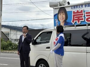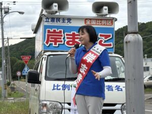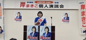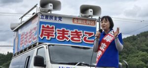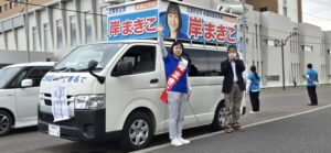 今日、明日は一人でも多くの方に2枚目の比例代表選挙に「岸まきこ」へご支援いただけるよう地元での活動です。