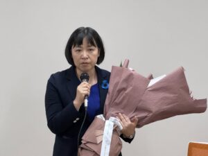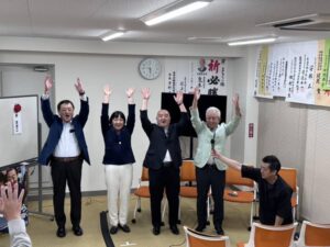 大切な仲間の落選や現下の情勢を踏まえると笑顔少なめのご挨拶となりました。