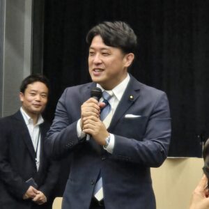 堤かなめ衆議院議員が福岡県大野城市長選に向け辞任したため、丸尾圭祐(まるおけいすけ)衆議院議員が繰り上げ当選となり、挨拶されました。