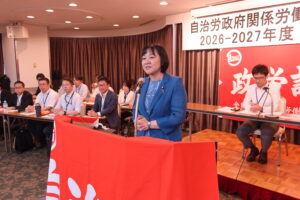 「公共サービス民間労組評議会第35回定期総会」と「政府関係労働組合評議会2026-2027年度定期総会」に本部の木村副執行委員長、鬼木まこと参議院議員と出席し、挨拶しました。