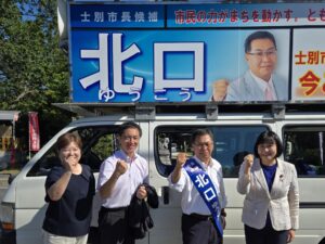 士別市長選挙「北口ゆうこう」候補の応援です!道議会議員の皆さんもたくさん応援に来ています。