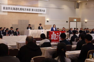 自治労北海道札幌地方本部第6回定期大会に、立憲民主党北海道の勝部けんじ代表、衆議院議員の北海道1区・道下大樹議員、2区・松木けんこう議員、3区・荒井ゆたか議員、4区・おおつき紅葉議員秘書、5区・池田まき議員、各級組織内議員の皆さんとともに出席しました。