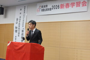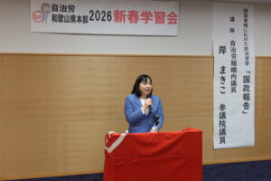 自治労和歌山県本部2026新春学習会で私からは国政報告、谷口和樹和歌山県議会議員からは県政報告を行いました。
