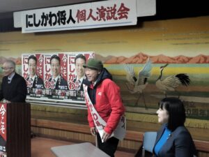 夜は、富良野市で行われた「にしかわ将人」個人演説会に弁士として参加しました。