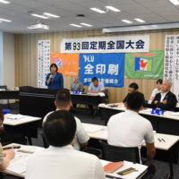 鬼木まこと参議院議員に3日間の自治労大会報告をしていたところ、自治労福岡県本部4役の皆さんが鬼木事務所に来られました。 午後からは、全印刷局労働組合第93回定期全国大会で挨拶しました。